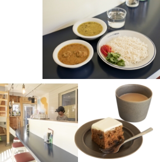 (¥1,300)。チキンカレーにはさっぱりとした美桜鶏を使用。4種の豆が入ったダルカレーはやさしく素朴な味わい。バスマティライスと共に。◯世田谷福祉作業所に製造を委託している「キャロットケーキ」、店主自ら乾燥・粉砕する生姜の風味が引き立つ「マサラチャイ」(各¥500)。 - 住所:目黒区碑文谷6-6-5 GAKUDAI COLLECTIV B-1棟 ☎080-7085-1542 営業時間:月~金11:30~14:00/18:00~22:00、土・日・祝11:30~22:00 休:水・木