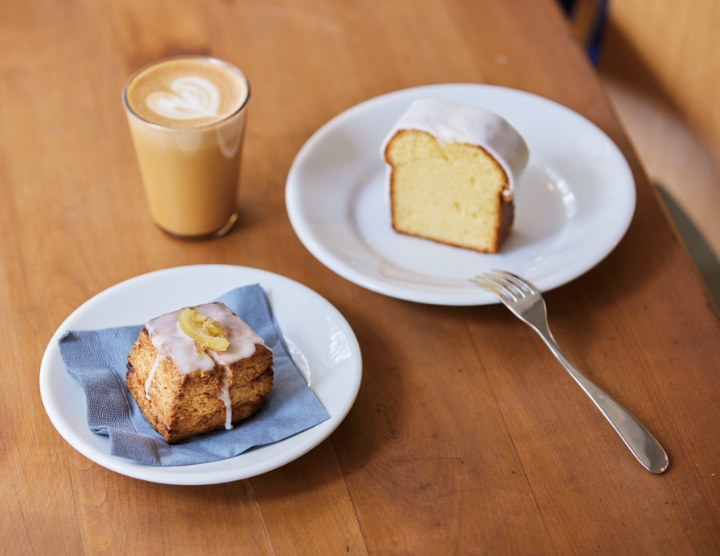 - 有機レモン果汁の爽やかな酸味と甘みの「レモンスコーン」(¥440)と「レモンケーキ」(¥480)。
