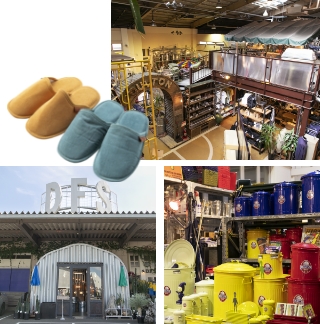 - ○ギフトとしても人気の「コーデュロイスリッパEV」¥1,650~1,760。○天井高を生かした3フロアにまたがる売り場。「グランベリーパーク」にも主に日用品を集めた業態の異なる「DULTON」直営店があります。○シンプルながらポップなカラーリングが魅力の「ガベージカン」(¥880~8,800)は、メーカーを代表するアイテム。こちらの店舗には全サイズ・全カラーが揃います。
