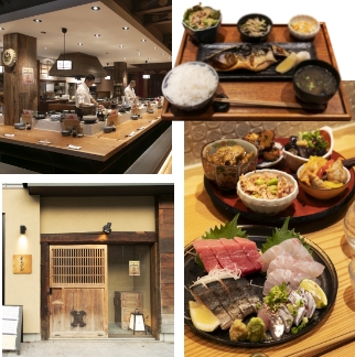 - ○ランチの「トロサバ文化干し定食」(¥1,430)。遠赤外線効果で皮目はパリッと、中はふっくら仕上がります。○おまけが付いて盛り合わせの点数が増えることも多いという「おまかせ三点盛り」(1人前¥1,200)、“お母さんの味”をイメージしたおばんざいの「おまかせ盛り合わせ」(¥1,280)。季節ごとに14~15種類揃う日本酒は、半合から注文できます。