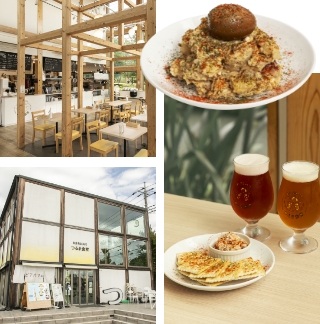 鶴間公園内の開放感あふれるカフェ - 鶴間公園のクラブハウス棟にある、使い勝手のいいカフェ。常時6種類を揃える生クラフトビールが人気で、ほとんどがテイクアウト可能なフードメニューを公園で楽しむ方も多いそう。店内では、地域の作り手たちによるマルシェや親子向けのイベント、生演奏が楽しめるジャズイベントなども開催。地域のコミュニティを支える場としても機能しています。