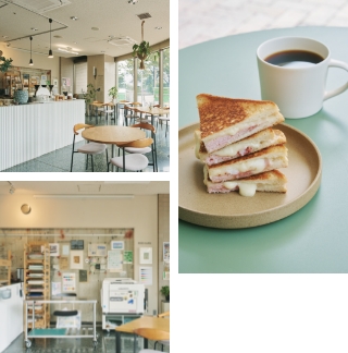 ゆったりとした空間 - 2023年、池上本門寺に隣接する公共施設内にオープン。明るく居心地のいいカフェを中心に、本格的な厨房設備を備えた「フードラボ」、デジタル孔版印刷機を利用できる「リソスタジオ」を併設した、ものづくりを応援する空間です。運営するのは、アーティストユニット「L PACK.」の小田桐 奨さん。不定期で多彩なイベントも開催され、池上に軽やかな風を運んでいます。