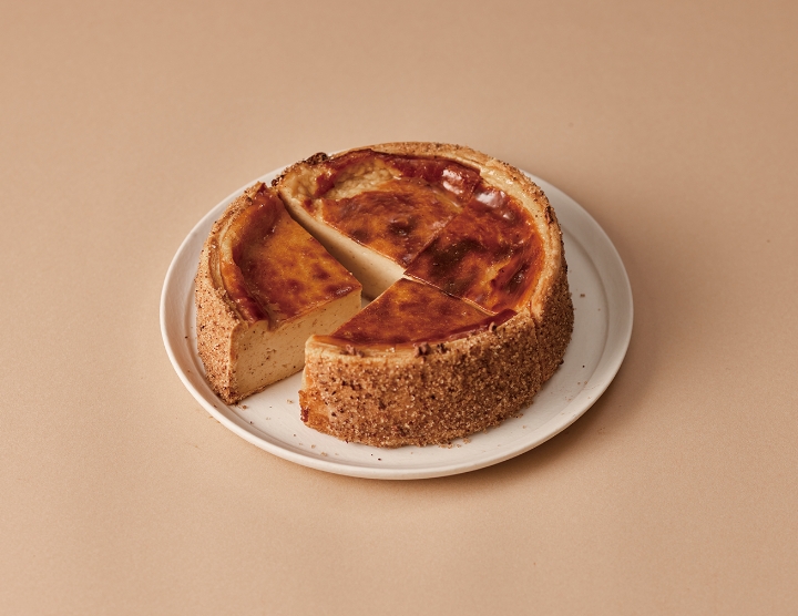 - 「フランナチュール -カカオ-」(1カット¥750/ホール¥3,002)。生地にカカオを練り込み、バニラの甘い香りの奥にほんのり香るカカオの余韻がなんとも特徴的なフラン。周りのシュガーにもカカオを混ぜ、食感と香りにアクセントを。