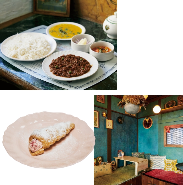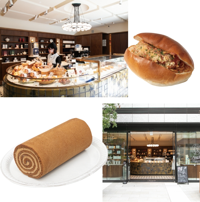 - ○本館の大階段をイメージしたカウンターなど、歴史的建造物であるホテルのエッセンスを取り入れた意匠も素敵な空間。○「ホテルニューグランド」発祥だといわれるスパゲッティナポリタンを挟んだ、ボリュームのある「ナポパン プレミアム」(¥972)。○美しい巻きが見事なシグネチャー「モカルーロ」(¥3,456)は、コーヒークリームが香り立つ逸品。