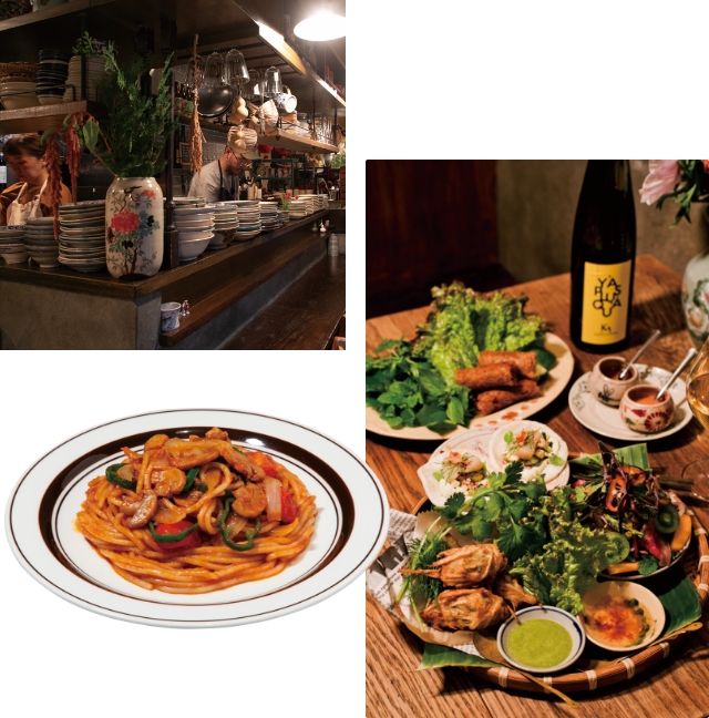 自由なアジアン料理 - 吉田清志さん・清美さんが夫婦で営む「MÉLI-MÉLO」。店名はフランス語で“ごちゃ混ぜ”という意味。現地の味に日本ならではの食材や感性を掛け合わせてアレンジした、枠にとらわれないアジアン料理が魅力です。造り手の顔が見えるようなナチュラルワインや日本酒と合わせて楽しんでみて。清美さんのご両親が営んでいた喫茶店の味を受け継ぐナポリタンも人気です。