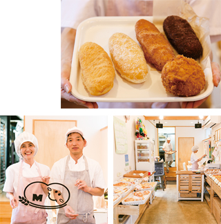 - ○きな粉やシナモンなど、評判の揚げパンシリーズ。中でも人気NO.1は自家製キーマのカレーパン¥200。○オープンから常時パンが焼き上がるという店内は山食や惣菜パン、ベーグル、クロワッサンなど豊富なラインナップ。売り切れ必至のグラノーラは月2度の限定販売。 ○オーナー夫婦は食材の相談も気軽に応対してくれます。