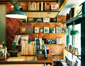 - 入口付近には絵本や児童書など昔読んだことのある本が並び、奥に進むほど海外の画集や写真集など専門性が高くなっていきます。この配置は、読んだり、目にしたりしたことのある本から芽生えた興味の種が膨らんでいくようにという工夫。店内には緑や雑貨も。