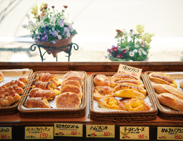 - 「お店はステージ」とオーナー。一軒家の増築を重ね広くなったステージに並ぶ主役たるパンは、なんと250種。亀をかたどったメロンパンは子どもを、ひじきを生地で包んだパンはお年寄りを、幅広い年齢の方々を喜ばせています。駅から離れた場所に作 ったのは、それでも足を運んでもらえる店にしたか ったから。朝からひっきりなしにお客が訪れ、店には活気があふれます。1999年の開店以来、口コミで人気を呼び、今では駅前などにも支店を構えます。