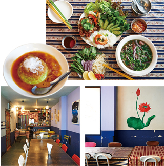 老舗ベトナム料理店 - オープンから今年で20年。まるでベトナムに居るかのような異国情緒漂う店内で提供されるのは、生春巻きやフォーなどの日本でも馴染みある定番メニューから、ベトナム風お好み焼き「バインセオ」や、米麺の焼きそば「フーティウ」などの珍しいメニューまで、野菜とハーブがたっぷり使われた本場の家庭料理。連日混み合うほどの人気店なので、予約は必須です。