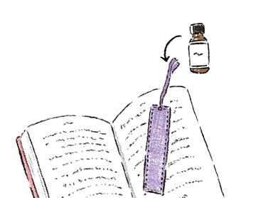 - しおりに垂らして表面が乾いたら、手帳や本、名刺ケースにはさみます。開くと香りがほんのり漂います。