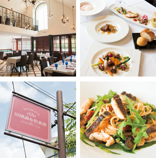 一軒家のレストラン - 閑静な住宅地に佇む瀟洒なレストラン。2階へ進むと開放感のある吹き抜けのレストランフロアが広がり、非日常を感じる空間で、イタリアンにフレンチを融合させた季節ごとの料理を味わうことができます。ランチ・ディナーから、貸切や結婚パーティまで多様な使い方が可能。1階には和牛や旬の魚介が楽しめる「鉄板焼き田焼」と、テラス席のあるカフェを併設しています。