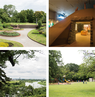 田園調布の憩いの場 - 多摩川沿いの丘陵地にある全長約750メートルの大型公園。春は桜、梅雨はアジサイの名所と知られる園内には、古墳をはじめ、水生植物園や野草園、広場などを有するほか、6世紀後半に関東で造られた前方後円墳をモデルにした「古墳展示室」も。晴れた日は「自然林の道」から丹沢の山並みや富士山を望むことができ、その景色は、国交省が住民の投票をもとに選定する「多摩川八景」に認定されています。