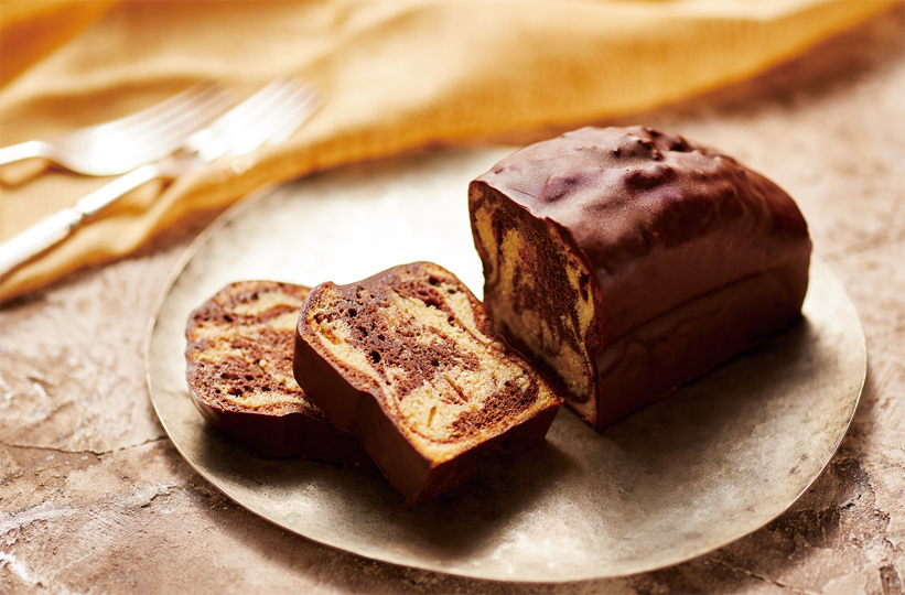バニラを鞘ごと食べるなんて初めてだ。「バニラビーンズと鞘、両方の香りを楽しんでほしい」、そんな思いから波多江篤シェフが編み出したのは、こそげた種だけでなく鞘までペーストにして混ぜ込んだ前代未聞のパウンドケーキ。ほかにない「記憶に残るお菓子」を生み出すため、製菓のセオリーを軽やかに超えるアプローチは大胆にも見えるけれど、イメージしたおいしさを追って試作を繰り返す姿は、ひたすら緻密で実直だ。自在なクリエーションのルーツは「ル・ムーリス アラン・デュカス」(パリ)や「ドミニク・ブシェ トーキョー」など、パティスリーより長いレストランでの経験にもありそう。実際、バニラの鞘のペースト化もレストランでよく使われる機械で叶えたとか。美しいマーブルに見とれつつ「ケーク マルブル バニーユショコラ」をいただくと舌にしっとり溶け、バニラがプチプチ。その香りは強いというより静かに奥深く、ふくよかな余韻はいつまでも続くのだった。- お茶の時間をとびきり豊かにしてくれる「ケーク マルブル バニーユショコラ」¥2,000。ケークマルブルはほかにショコラキャラメル、マッチャバニーユ、キャラメルバニーユの全4種。