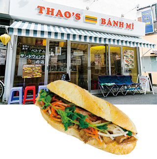 食べればクセになる名物サンド - フランスパンにバター、パテを塗り、野菜と爽やかな香りのハーブ、チキンやポークなどの肉をギュッと挟んだ、ベトナム発祥サンドイッチ、バインミー。「タオズ」は、看板メニューの「自家製ベトナムハムとレバーパテ」やユニークな「五香粉ローストチキン」など約7種のバインミーを展開しています。今年1月には同ビル2階に食堂「タンハイ タオズ」をオープン!