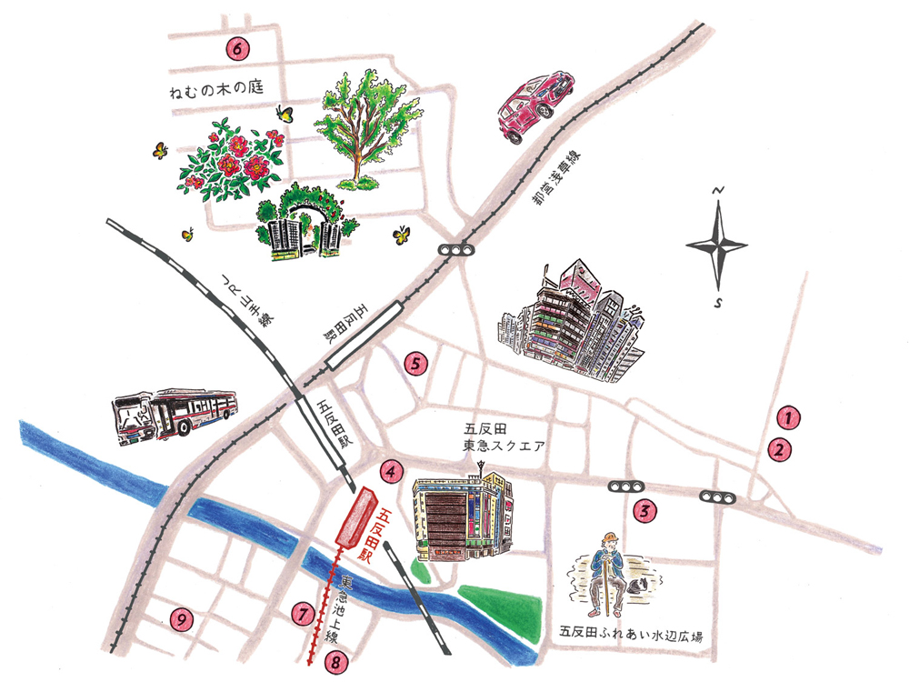 沿線街さんぽ「五反田」イラストマップ内の