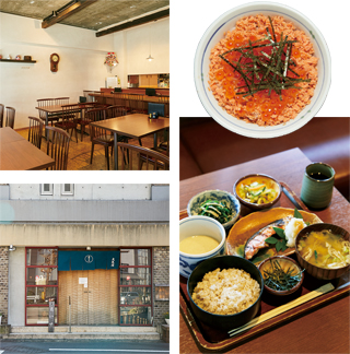 - ○「麦とろ紅鮭定食」(¥1,700)は粕漬け焼きの鮭がメイン。築地から仕入れる魚はほかに、めかじきの照り焼きやいわしの田舎煮も。○「いくらと鮭の親子丼」(香の物や小鉢などがセット ¥1,700)。ランチはすべて-¥200で提供。○落ち着いた店内ではお米や調味料の販売もしています。