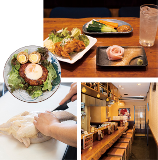 鶏料理専門店で堪能 - 「その日のものはその日のうちに」をモットーに、お店で使う鶏肉は鮮度が命。厳選された朝びき「水郷赤鶏」の丸鶏を毎日仕入れ、食鳥処理の資格を持つ大将がさばくところから仕込み始めます。「水郷赤鶏」はやわらかくてジューシー。おすすめの「そぎみのお造り」をはじめ、つくね焼きから唐揚げ、手羽焼き、とり皮ポン酢、鶏ガラスープまで部位を余すところなく味わえます。