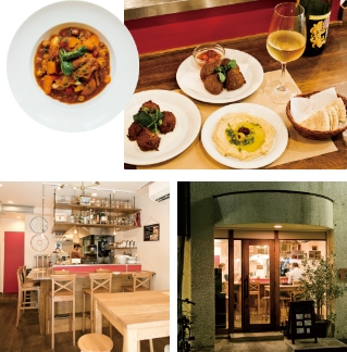 ベルリン仕込みの本格・地中海料理 - ベルリンで10年、帰国後に地中海料理の名店「CICADA」で修業を積んだシェフ宮嶋 聡さんのお店。異国情緒あふれるメニューがずらりと並ぶ店内の黒板で、特におすすめなのが、オリジナルブレンドのスパイスを練り込んだ現地のレシピに忠実な「フムス」。そんな料理に合わせるならワインがぴったりで、個性的な味わいの南アフリカやドイツ産の自然派が揃います。ベジタリアン対応も可能。