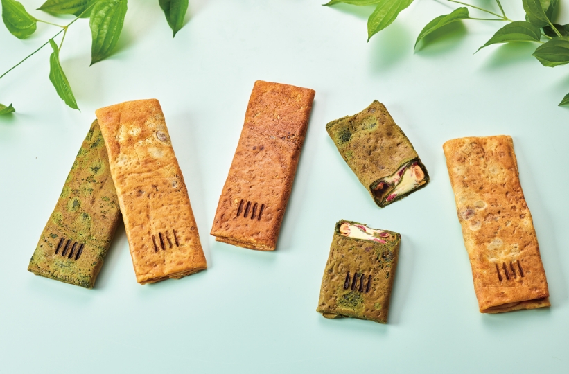 催事では常に大行列のクレープ店「EQUALLY」が自店をオープン!「PÂTISSERIE ASAKO IWAYANAGI」などで腕を磨いた友納滉一シェフらしい、素材とパティシエの技が生きるパフェみたいなクレープやホットクレープに加え、食事もできるクレープリーカフェに。これまでの間借り店から何かと進化した。催事限定だった「クレープショコラサンド」も定番化。鉄板上で生地に仏産発酵バターを塗り、チョコとヘーゼルナッツを散らして。焼いたら急速冷凍し、水分やうま味を閉じ込める。リベイクするとパリッとした生地からチョコがとろりの、焼きたてが復活。静岡「ノルマンディーショコラ」のクラフトチョコを使ったミルクとダークは、エクアドル産カカオの果実味に、カリコリ砕けるヘーゼルナッツが香ばしい。「冷蔵庫から出してそのまま食べても」と友納さん。試すとチョコはパリパリ、生地もちりで、裏メニュー的楽しさ。クレープの新世界がここにある!「クレープショコラサンド」各¥1,100~。チョコの個性が生きる「エクアドルダーク」、「エクアドルミルク」と、ゲランドの塩が隠し味の「塩ショコラ」。宇治抹茶生地の香りと苦味がホワイトチョコのまろみとひとつになる「抹茶ホワイトチョコ」、さらにフランボワーズの甘酸っぱさも鮮やかな「抹茶ホワイトチョコ×フランボワーズ」の5種。常温でも持ち歩けるのも手土産向き。