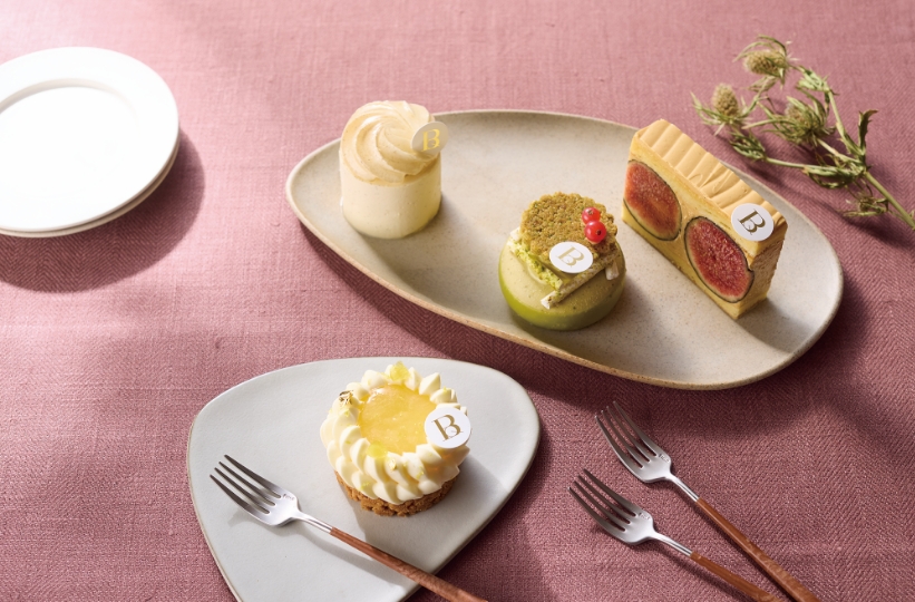 甘酸っぱいクリームあふれるフランスの定番レモンタルトが、もっとレモンなお菓子に進化! 「Bonne Qualité」中野竜弘シェフは力強い香川産「豊島(てしま)レモン」をクランブルタルト、クリーム、生クリームなど、全パーツに使う。極めつけはトップに輝くレモンジュレで、シロップに漬けた果肉がごろごろ。口にするとサク、トロ、ジュワッ。鮮烈な果実味がやみつきに。こんなふうに彼のお菓子は味の組み合わせはシンプルながら、良い素材と柔軟な発想、丁寧な手仕事で無二の喜びへ誘う。バニラづくしのケーキもしかり。鞘付き肉厚の最高級バニラを惜しみなく使い、クリームに3日も漬け込み香りを移すから、バニラの奥にあるキャラメルや洋酒のような芳醇さまで漂う。ピスタチオなら「緑の宝石」と称される伊・ブロンテ産を自ら挽きペーストに。あえて残した粒をかむほど、気高い香りが鼻に抜ける。まさにBonne Qualité(上質)な食体験がここにある!手前・どこまでもフレッシュなレモンタルト「シャルマン」¥800。奥・左から、全パーツに最高級バニラをふんだんに使った「クールヴァニーユ」、ピスタチオの自家製ペーストを使うムースやクリームなどに赤い果実が甘酸っぱい「フルーク」各¥820、佐賀県「富田農園」の黒いちじく「ビオレソリエス」にキャラメルムースリーヌを合わせた「ソリエ」(¥840)。