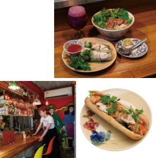 家族のオリジナルレシピ - 近隣でクラフトビール専門店「フジマルクラフト」を営む藤原由美子さんが、2号店として手がけたベトナム料理店。由美子さんが7歳の頃から募らせるベトナムへの愛を脈々と受け継ぐ、娘のヒラメさんが料理に腕を振るいます。看板メニューは、しそ、バジル、ミント、パクチー、ディルの5種のハーブを使った現地の大定番「フォー」と「バインミー」。そのほか季節の前菜も。