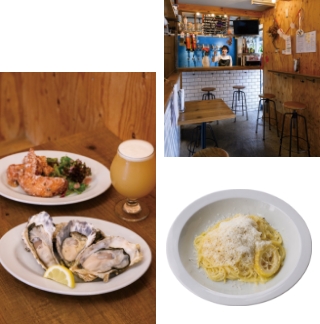 いいとこ取りのオイスターバー - いわゆるクラフトビール専門店でも、牡蠣中心のオイスターバーでもなく、両方のよいところを絶妙にかけ合わせた新しいお店。クラフトビールは国内外から厳選した樽生が常時7種、料理は、新鮮な生牡蠣をはじめ、基本的にイタリアンをベースとした前菜からメイン、パスタ、変化球のスパイス料理まで取り揃えています。近隣の「オイスターバーマリオ バルバ」姉妹店。